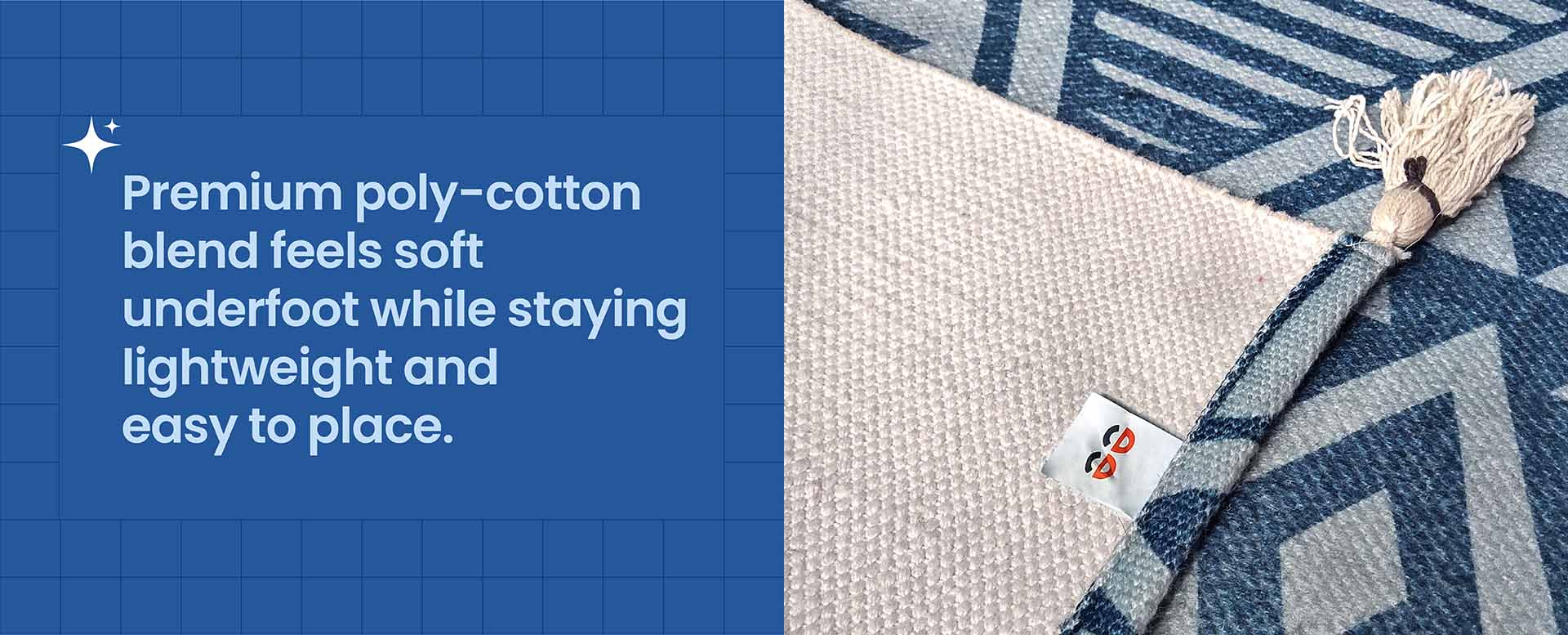 The perfect way to elevate your living space with style and durability. Designed to set the tone for any room, these dhurries feature trendy patterns and designs that will breathe new life into your home decor. What sets Sleepyhead dhurries apart is their exceptional quality and long-lasting beauty. Digitally printed using fade-resistant inks and colours, these dhurries will retain their vibrant hues and texture over time. Whether placed indoors or outdoors, they are built to withstand the test of time. One of the standout features of Sleepyhead dhurries is their skid-safe design. With a firm grip, they stay put even in high-traffic areas or when exposed to moisture. Say goodbye to constantly adjusting your rug - these dhurries come with four chunky tassels at the ends that not only add a touch of style but also keep you from slipping. But that's not all - Sleepyhead dhurries are not only visually appealing but also environmentally conscious. Handmade from recycled P.E.T sourced from used plastic carbonated beverage and water bottles, they contribute to reducing plastic waste and promoting sustainability. Choose Sleepyhead Premium Poly Cotton Geometric Dhurrie to add a touch of elegance and eco-friendliness to your living space. It's time to step up your decor game with a rug that's both stylish and sustainable.