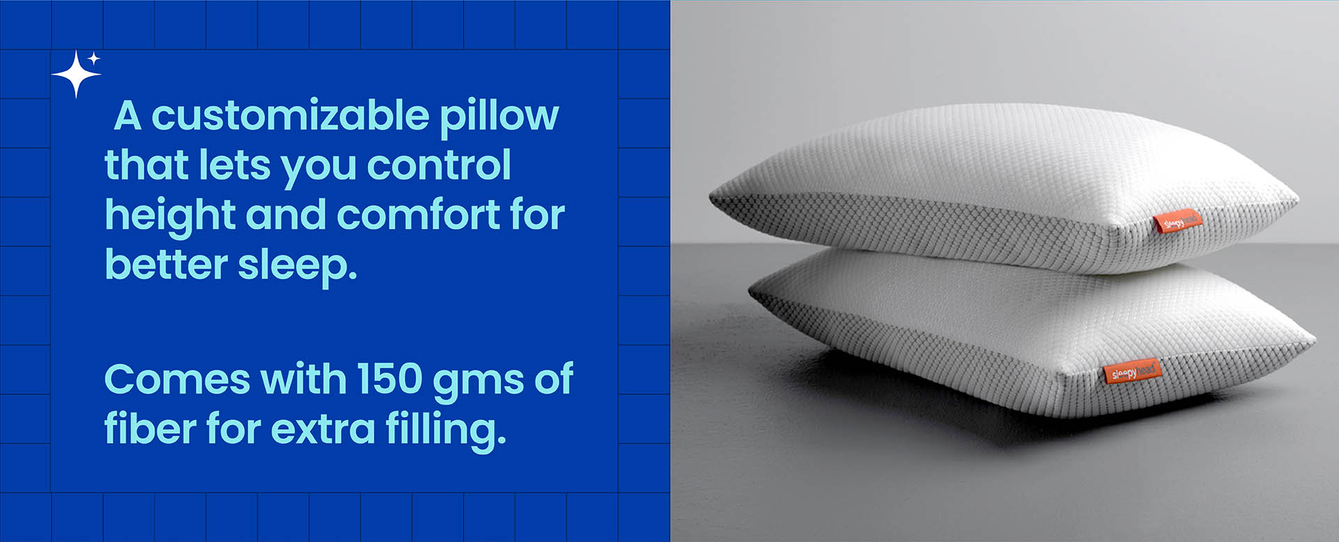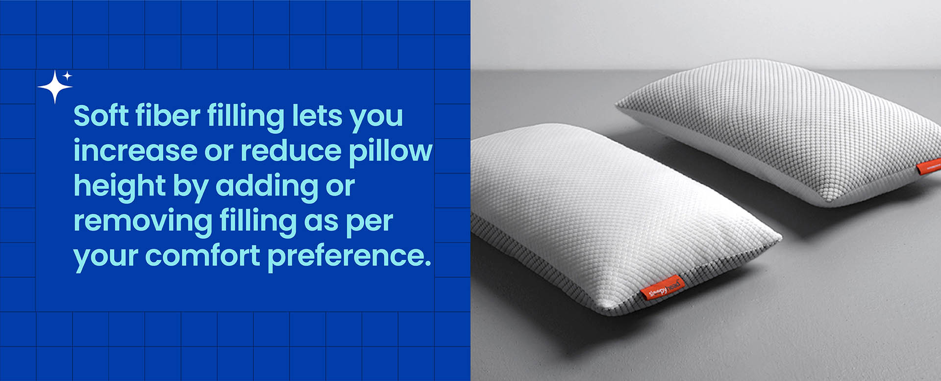 The perfect balance of support and softness for your ultimate comfort. When it comes to pillows, we understand that everyone has their own preferences. Some prefer a firmer pillow for added support, while others prefer a softer one for a plush and cozy feel. With the Sleepyhead Soft Sleeping Pillow, you don't have to compromise. Crafted with care and precision, this pack of two pillows is designed to provide the perfect support and softness that will cater to your individual needs. The pillow is filled with high-quality fiber that offers optimal support for your head and neck, ensuring proper alignment and relieving any pressure points. The softness of the pillow gently cradles your head, allowing you to sink into a state of pure relaxation. Whether you're a back sleeper, a side sleeper, or a combination of both, the Sleepyhead Fiber Pillow adapts to your sleeping style, providing the ideal level of comfort throughout the night. You can finally say goodbye to waking up with a sore neck or feeling restless due to an uncomfortable pillow. In addition to its exceptional comfort, the Sleepyhead Fiber Pillow is also durable and long-lasting. It maintains its shape and loft, ensuring that you enjoy its benefits for years to come. The pack of two pillows allows you to have a spare or share the comfort with your loved ones.