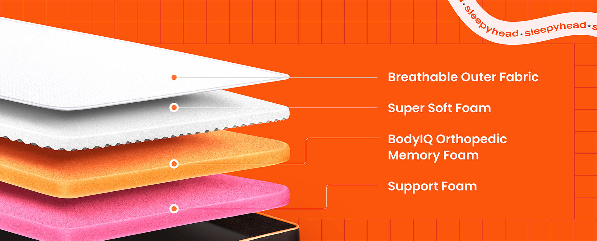 Personalized Comfort: Sleepyhead's BodyIQ Orthopedic Memory Foam Technology adjusts to your body's unique contours for tailored comfort.
