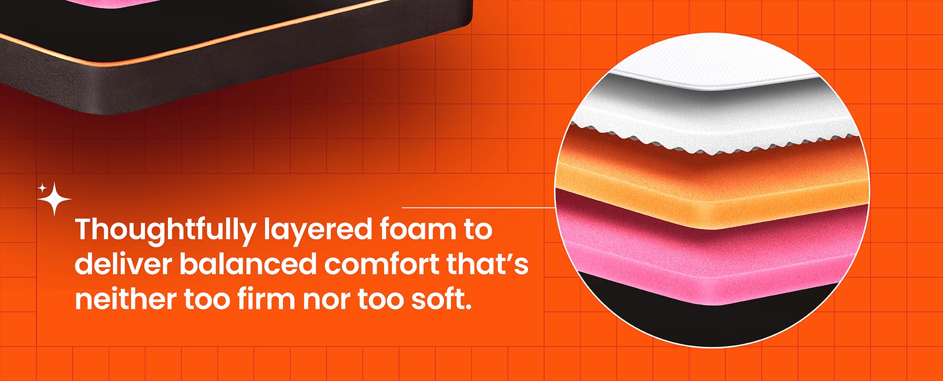 The first layer is crafted with soft foam. It provides a gentle cradle, offering initial plushness while maintaining proper alignment for your spine.