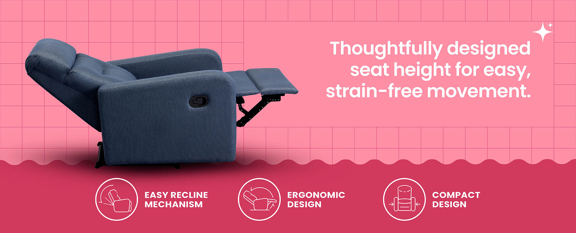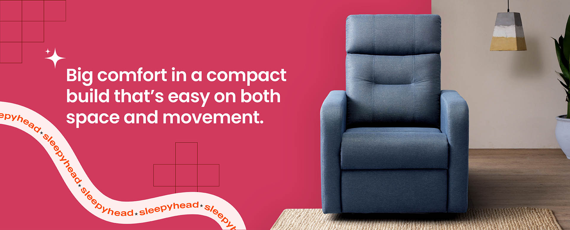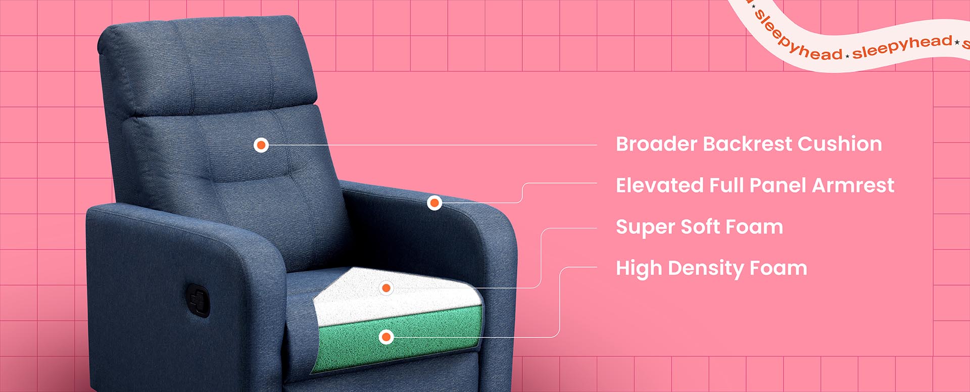 A perfect addition to elevate your favourite corner in the house. With its sleek and comfortable design, it is bound to become your go-to piece of furniture for relaxation. The RX3 is expertly crafted for optimal comfort, featuring gentle curves and sleek edges that infuse a touch of modernity into its overall aesthetic. The padded multilayer cushioning ensures that the recliner maintains its shape and prevents any sagging over time. Enhanced with super-soft foam and supported by zigzag springs, this recliner provides exceptional comfort and long-term support. Designed with your ultimate relaxation in mind, the RX3 offers three levels of manual reclining. With a simple lever on the side, you can effortlessly transition from a lounging position to a semi-recline, all the way to a complete recline. The footrest conveniently folds up, allowing you to kick back and unwind. The sturdy solid wood frame and rolled arms add to the durability and longevity of this recliner, ensuring that your lounging experience remains comforting and reliable. Upholstered with premium fabric, the RX3 exudes an air of elegance. The attention to quality guarantees that this recliner will stand the test of time, providing you with years of comfort and enjoyment. Despite its robust features, the RX3 is designed to fit perfectly in most rooms, thanks to its compact size. Whether you want to sit, read, play games, or indulge in a rejuvenating nap, the Sleepyhead RX3 Recliner offers the perfect blend of style, functionality, and relaxation.