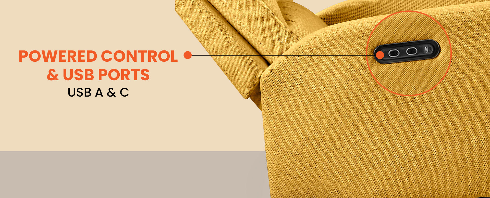 USB-A & USB-C Ports let you power up your devices while you unwind