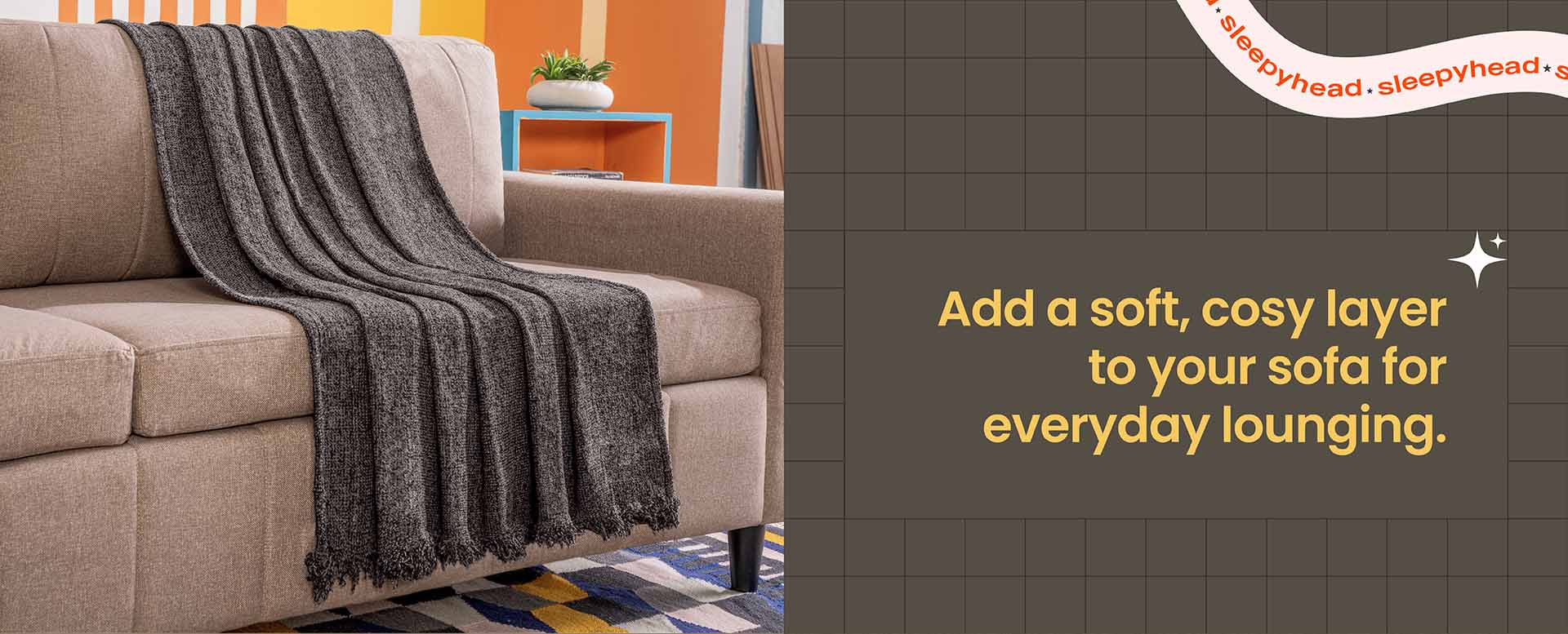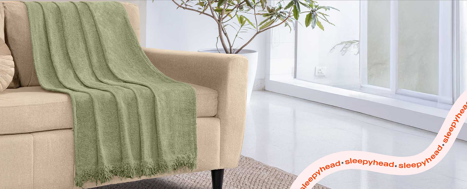Introducing the Sleepyhead versatile throw blanket designed to enhance both your living room and bedroom spaces. Available in two elegant hues – light green and dark grey – this throw effortlessly complements your decor, adding a touch of sophistication. Crafted with meticulous attention to detail, this throw is made from premium polyester that's exquisitely soft to the touch. Its plush texture offers a soothing embrace, making it the ideal companion for moments of relaxation. The tassel edges provide an aesthetic flourish, adding a chic element to your space. Whether you're unwinding on the sofa for a cozy movie night or simply seeking a light cover to keep you comfortably snug in bed, this throw rises to the occasion. Its lightweight construction offers just the right amount of warmth without feeling cumbersome. Experience the gentle cocooning sensation as you enjoy its delicate touch. Indulge in the luxury of versatility with a throw that seamlessly transitions between rooms and purposes. Embrace its warmth and elegance as it elevates your lounging experience. Embodying the perfect balance between function and aesthetics, our throw blanket is your invitation to immerse yourself in comfort, no matter the setting.